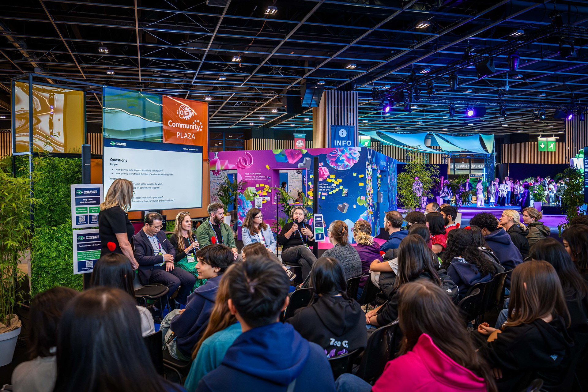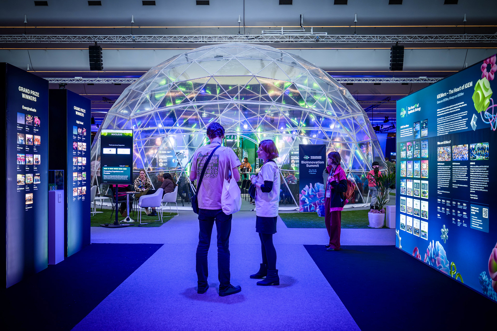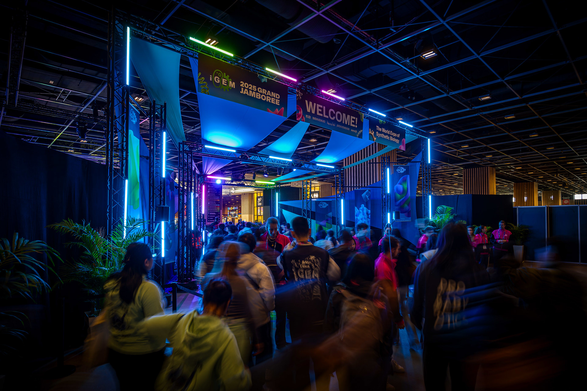 The iGEM Grand Jamboree is an annual competition program hosted at the Porte de Versailles in Paris, welcoming over 400 global teams. Every year, the competition incentivizes multidisciplinary and innovative synthetic-biology projects aimed at solving the world's most pressing problems. In 2025, working with iGEM's CEO, Nemanja Stijepovic, and Director of Production, Orsolya Szánthó, we managed multiple vendors and prepared detailed plans to organize the four-day event. Part of the Associate Production Coordinator's responsibility includes supervising load-in, creating creative directions for the main stage and lobby, troubleshooting any technical issues, and, more importantly, supporting the iGEM team members. I am ever so grateful for the opportunity to be a part of iGEM's Staff and contribute to the passion and creativity of student team members, exhibitors, and my fellow Staff members.