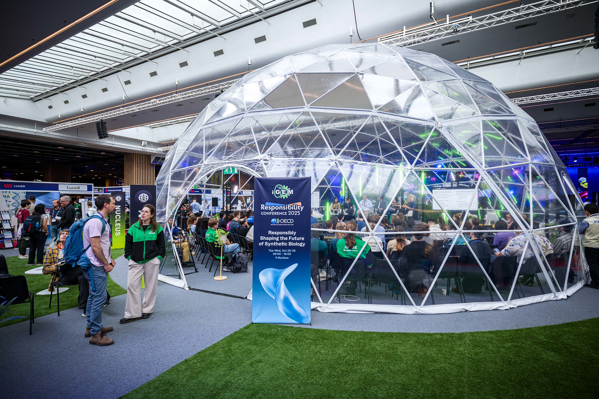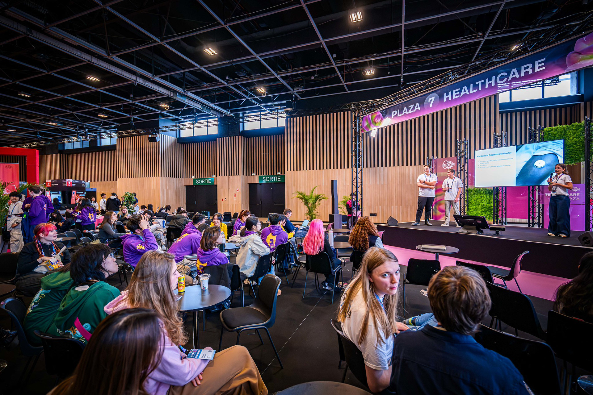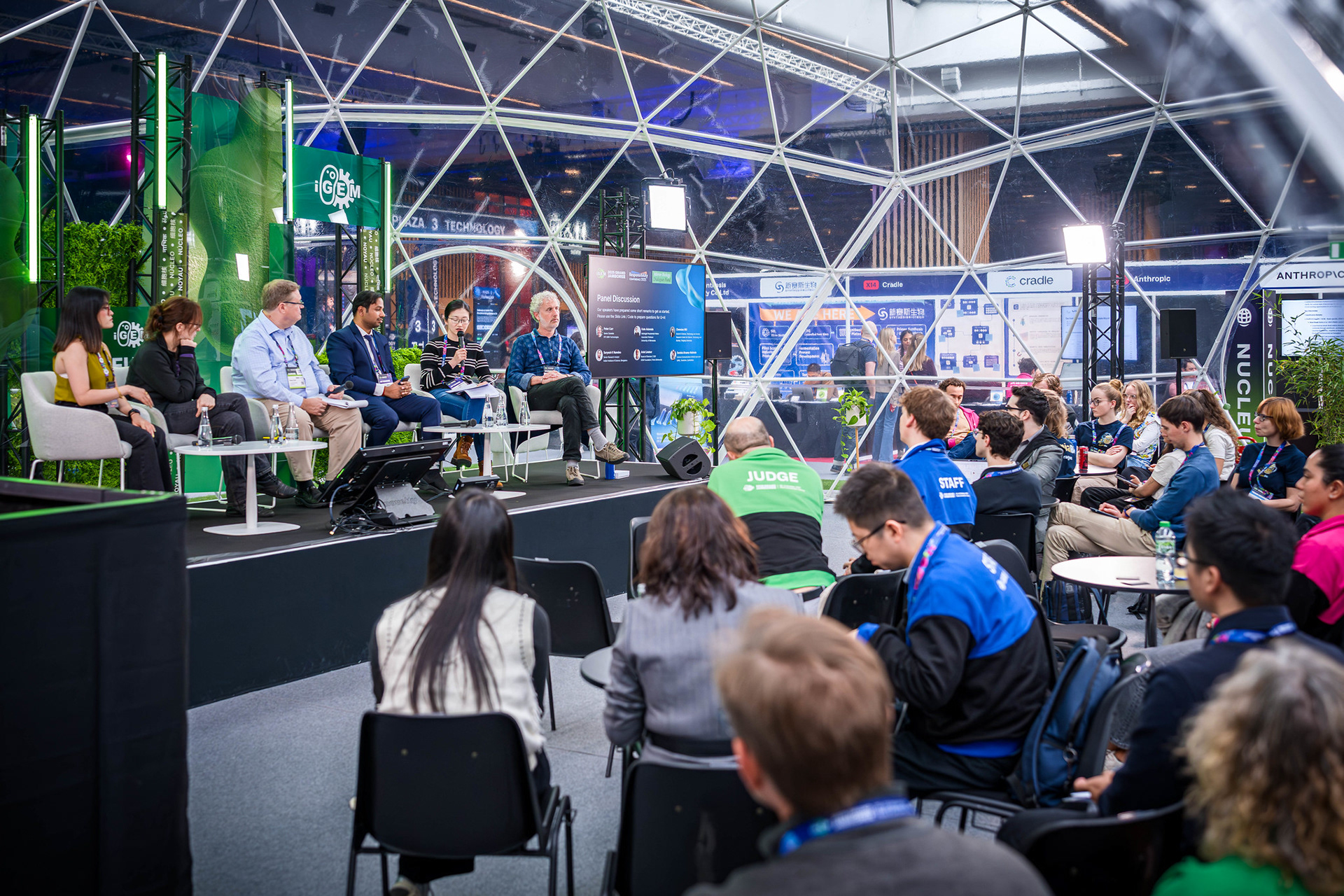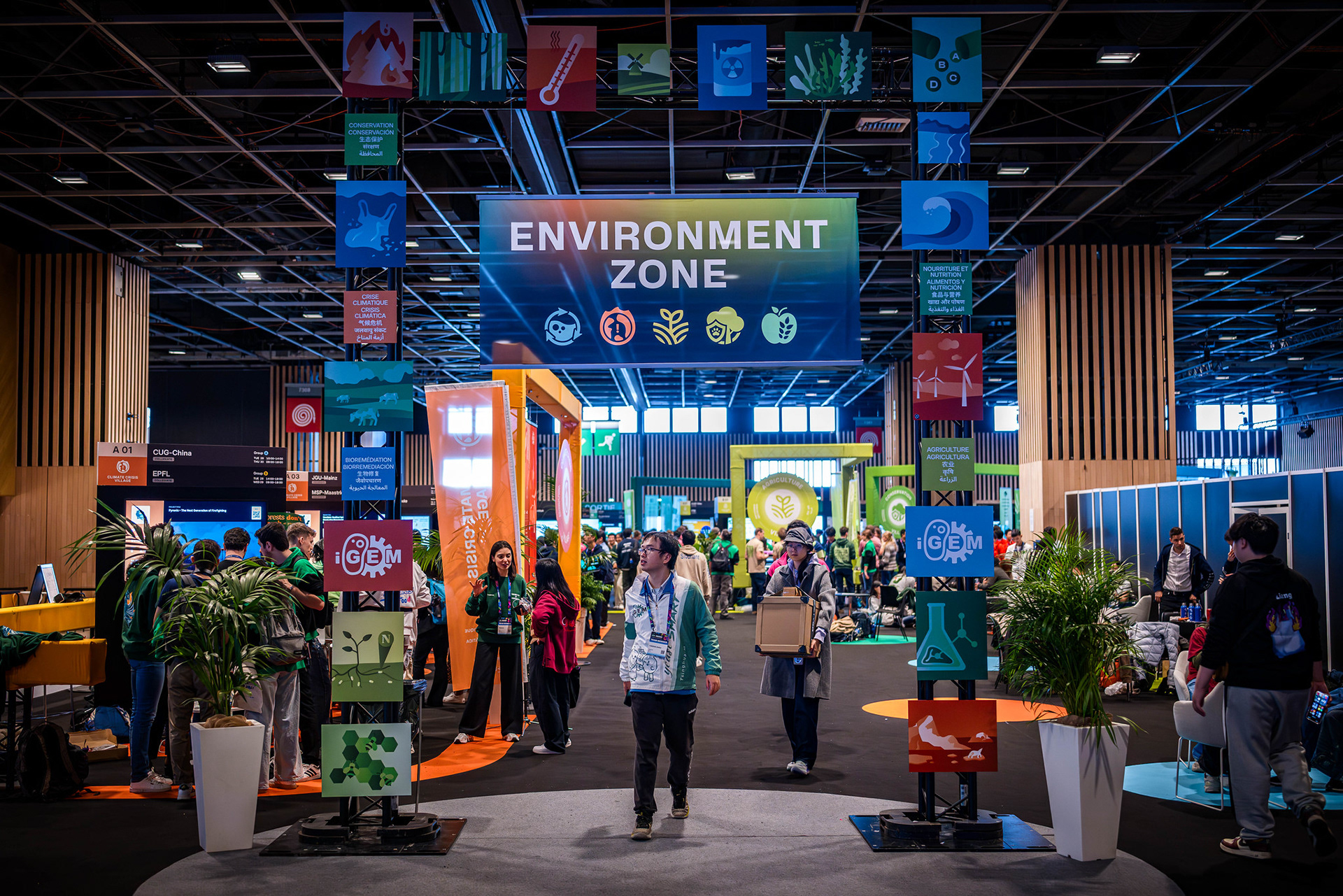 The iGEM Grand Jamboree is an annual competition program hosted at the Porte de Versailles in Paris, welcoming over 400 global teams. Every year, the competition incentivizes multidisciplinary and innovative synthetic-biology projects aimed at solving the world's most pressing problems. In 2025, working with iGEM's CEO, Nemanja Stijepovic, and Director of Production, Orsolya Szánthó, we managed multiple vendors and prepared detailed plans to organize the four-day event. Part of the Associate Production Coordinator's responsibility includes supervising load-in, creating creative directions for the main stage and lobby, troubleshooting any technical issues, and, more importantly, supporting the iGEM team members. I am ever so grateful for the opportunity to be a part of iGEM's Staff and contribute to the passion and creativity of student team members, exhibitors, and my fellow Staff members.
