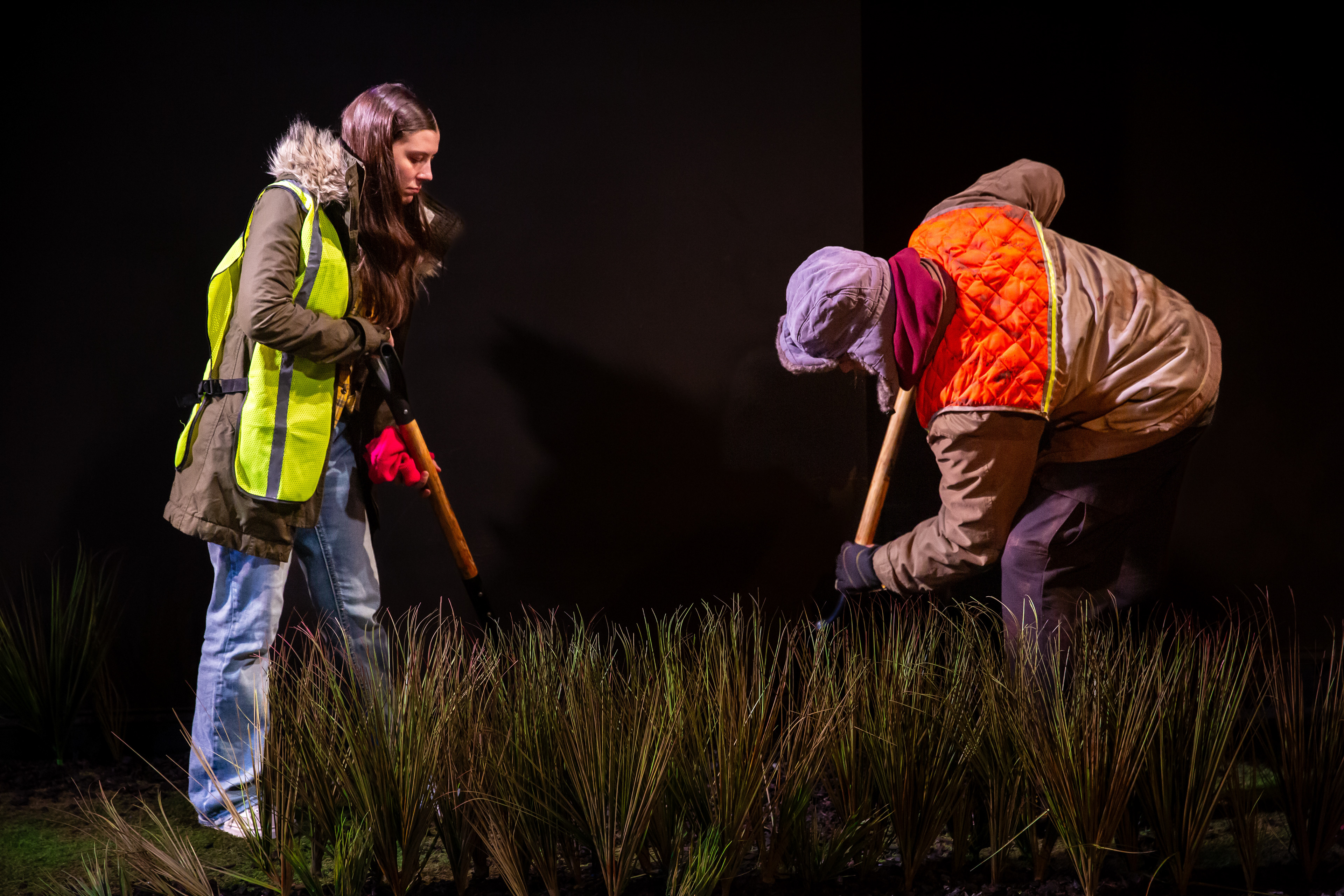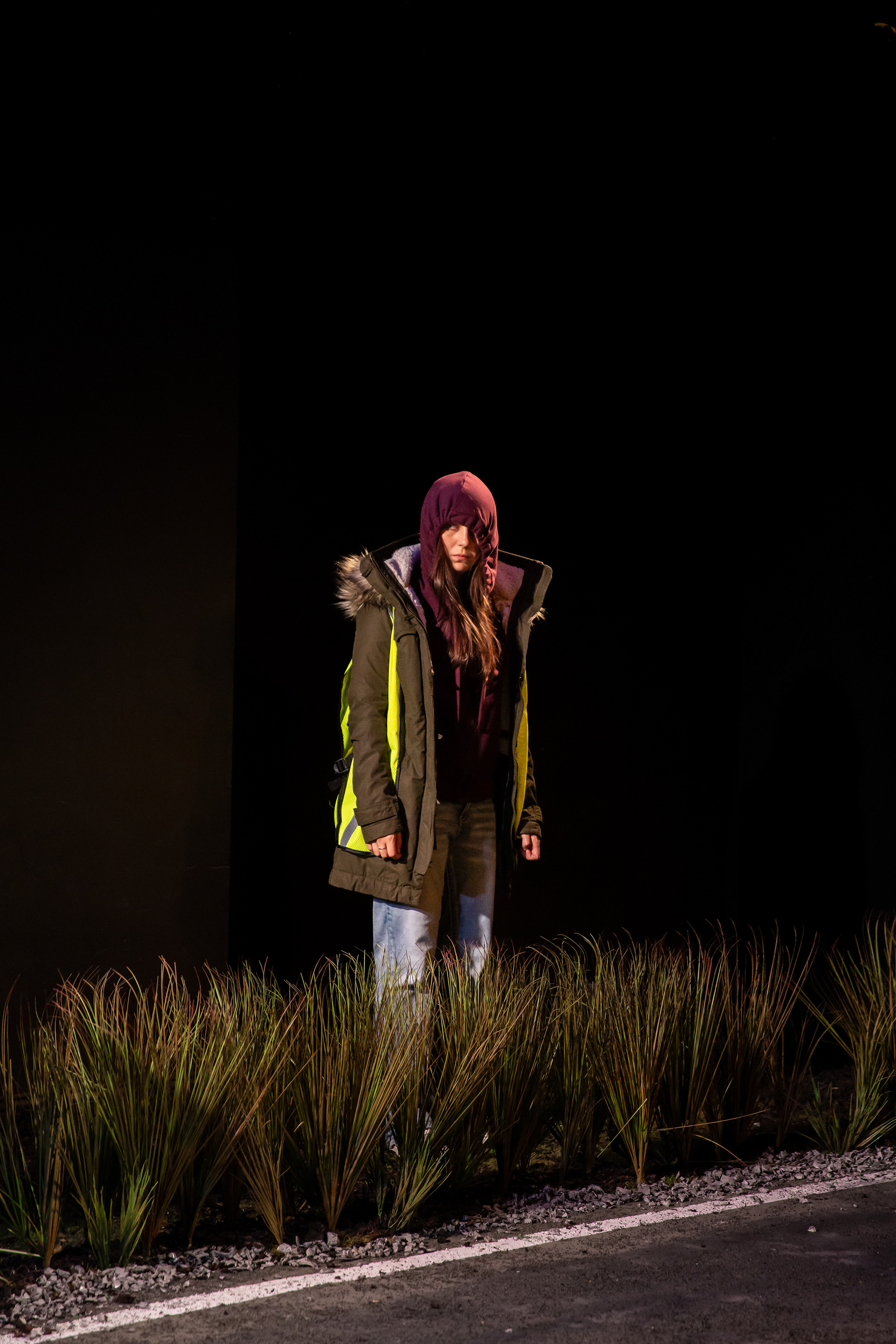 "If I was dazzled by the humble yet genius set, I was blown away by Paige Seber’s lighting and Max Van’s sound design. Each scene is a Saturday of Jaki’s community service, separated by a blackout, plunging audiences into a car on a dark road, accompanied by the voices of drivers speaking as they hit an animal. The soundscape combined with a differing burst of headlights for each crash pushes the boundaries of what can be created on stage."